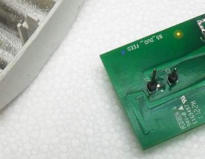Bueno, a primera vista apreciamos una lámina metalizada en el interior de la carcasa, sin ninguna conexión aparente y unos pines de conexión en el PCB que parecen sacados de un kit de inicio de Arduino. ¿Donde está la antena?.