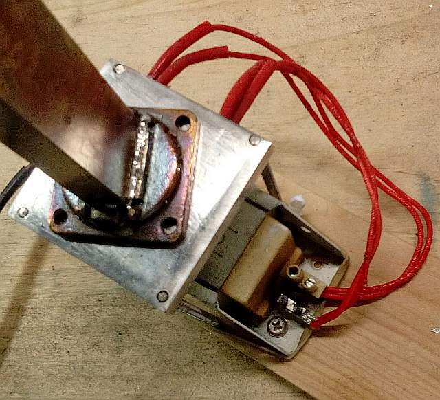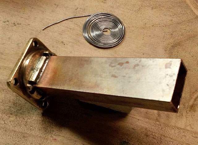 Estoy preparando un accesorio para Jose EA3HMJ y necesitaba unir la brida de sujeccion a un trozo de WR90. Aqui no tienes nada que hacer con un soldador convencional, la brida de latón y el guiaonda de cobre se “beben” el calor del sodador y es imposible soldar nada.
