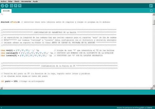 Descarga aquí el sketch con el código fuente, configúralo con los datos de tu estación, cárgalo en tu Arduino y ya puedes comenzar las pruebas de transmisión.