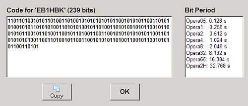 Le reduje el número de tramas Opera a uno y el tiempo de espera entre tramas opera a 20 segundos. Así se parece mas a una baliza estándar IARU. Aun hecho en falta el periodo de portadora continua. Es muy importante cuando se trata de identificar una baliza muy débil en el waterfall y no es una señal decodificable