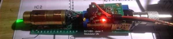 ‬El receptor,‭ ‬un demodulador digital,lleva en su salida unos altavoces alimentados para escuchar amplificadas las señales provenientes del emisor.‭ ‬Éste,‭ ‬es un simple modulador digital de audio a‭ ‬48‭ ‬khz con unos potenciómetro un ajuste fino de tensión y corriente a través del láser,‭ ‬para conseguir ver en un osciloscopio,‭ ‬la señal de salida modulada,‭ ‬sin distorsiones.‭