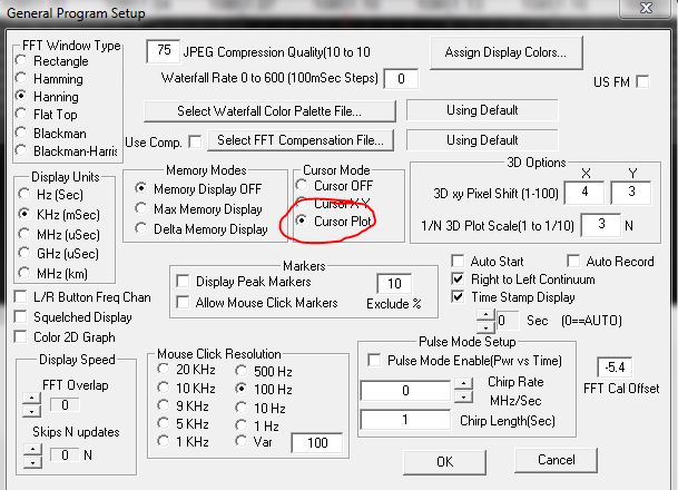 Contribución de Iban, EB3FRN: Para no tener que estar contando divisiones en SpectraVue y saber cual es el incremento de señal en dB hay una manera de hacerlo desde el mismo programa Vamos a General Setup y activamos la opción de Cursor Plot
