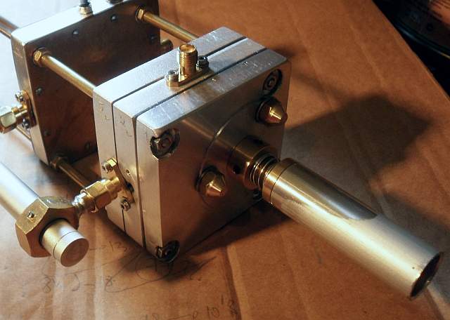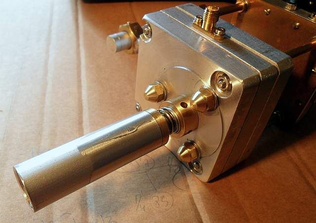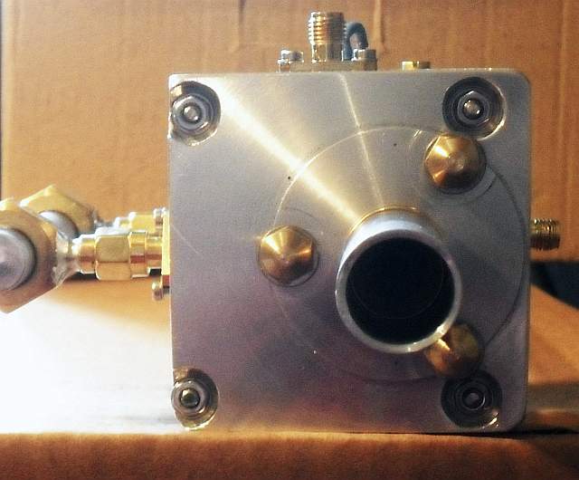 En estas imágenes vemos el prototipo montado sobre el mezclador Kubik-Potito. La parte frontal del mezclador se ha mecanizado también para acoplar el conjunto directamente al reflector parabólico, al estilo de la placa MM.